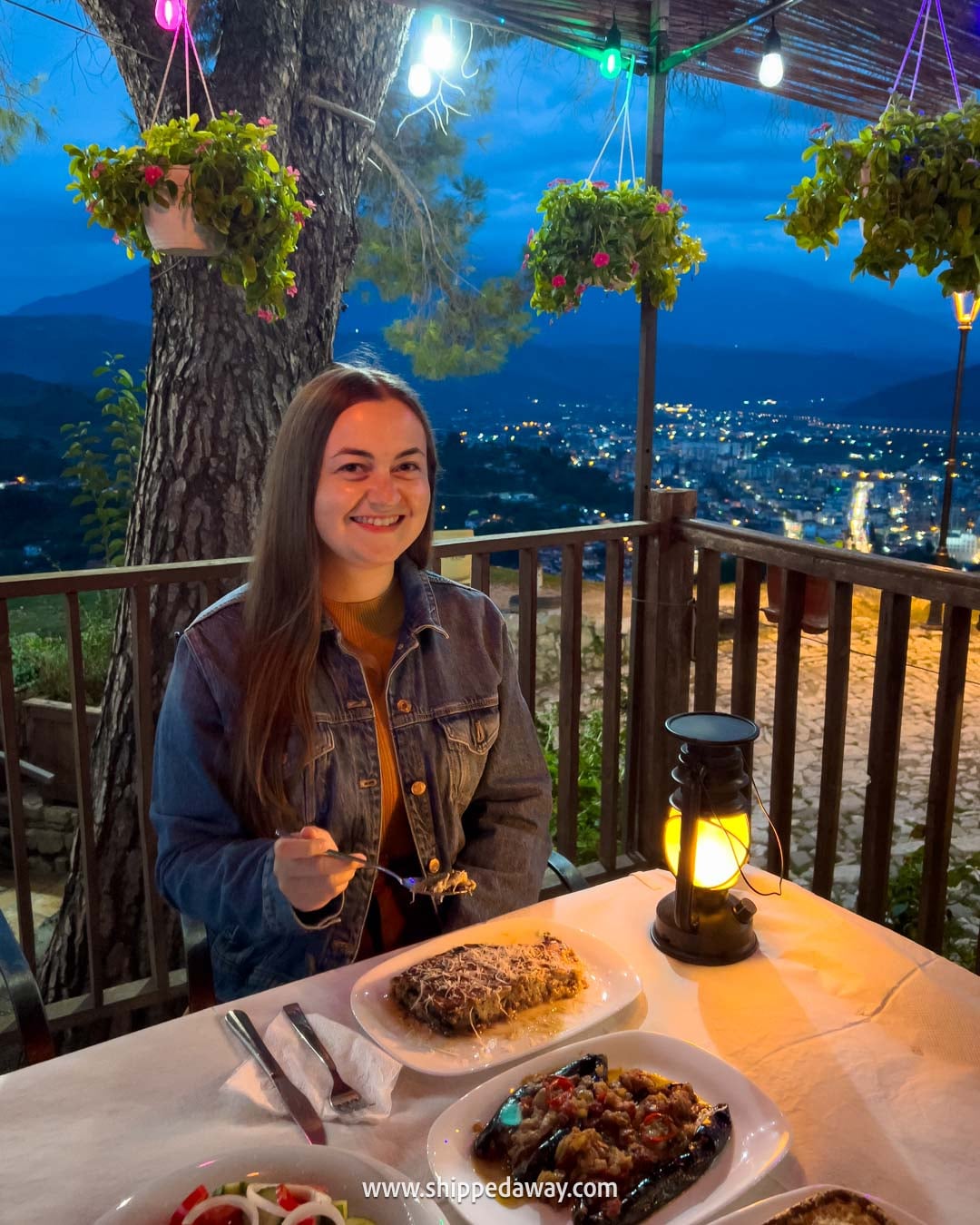 Arijana celebrated her 30th Birthday in Berat, and we chose the Te Zalua restaurant in the Berat Castle for dinner. It was a great choice, as the traditional food was fabulous – we tried their famous Eggplant Musaka, and the traditional Fergese, plus a village salad. All dishes were really good.